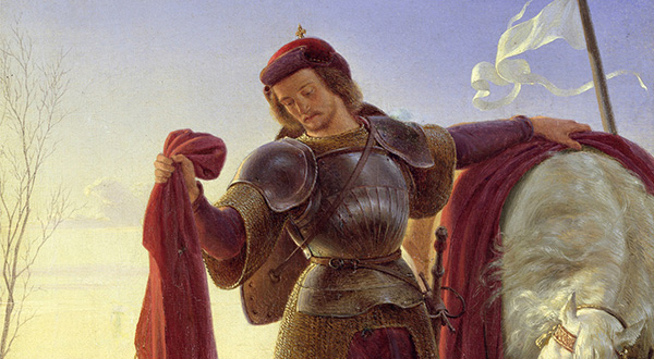 Die Legende erzählt, dass Martin eines kalten Winterabends auf seiner Runde einen kaum bekleideten, zitternden Bettler traf und angesichts dieses Elenden, der vor Tagesanbruch zu sterben drohte, nicht gleichgültig bleiben konnte.